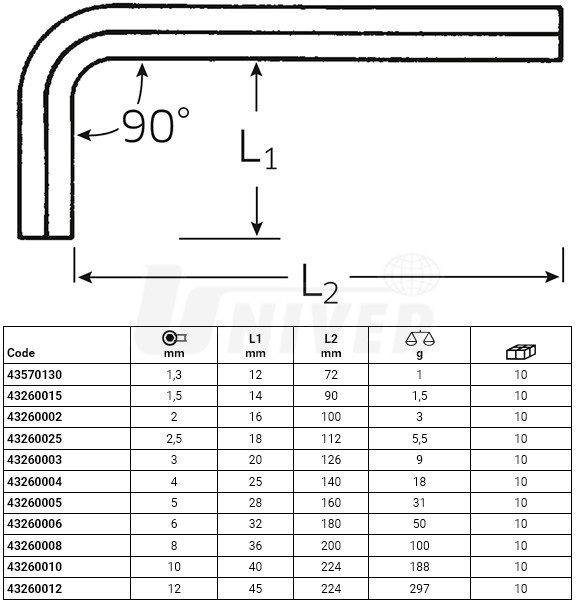 STAHLWILLE 10767A 1,3MM-0,050" Šroubovák úhlový se šestihranem s kulovou hlavou