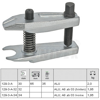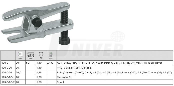Stahováky kulových čepů osobních automobilů (na spojovacích/řídících tyčích, na pákách řízení, na zavěšeních kol, na stabilizátorech apod.) pákového provedení se speciálním pevnostním šroubem.