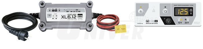 - přístroj má přídavnou automatickou nabíječku GYSFLASH 6.12 XL (230 V, 6 A, osmistupňová nabíjecí charakteristika IUoU)
