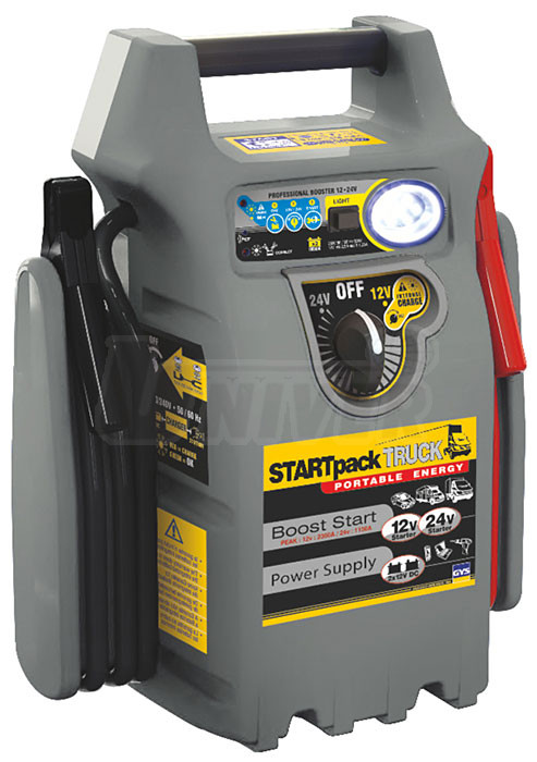 Velmi výkonný startovací zdroj 12/24 V s integrovanou funkcí zdroje stejnosměrného proudu 12 V a LED osvětlovací lampy.- rychlé nastartování motorů vozidel s vybitou baterií, aniž by došlo k poškození elektroniky startovaného vozidla