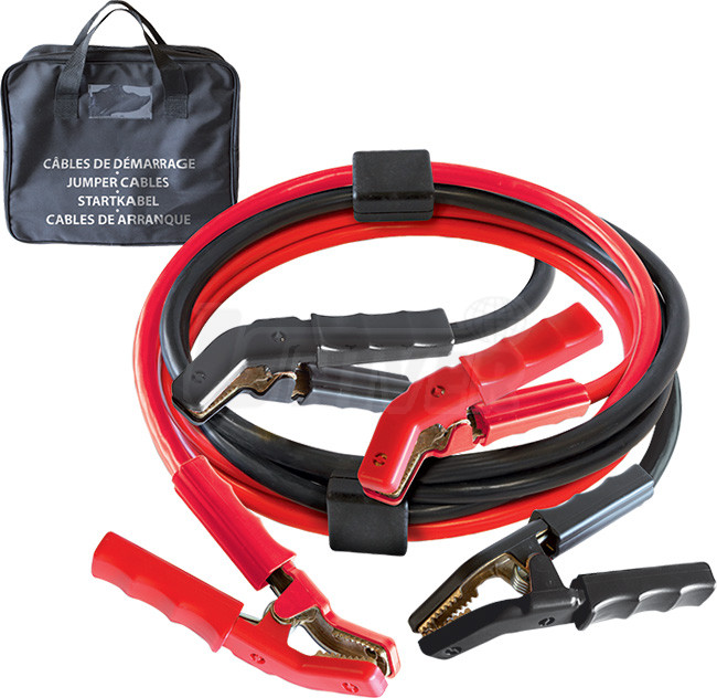 Vysoce kvalitní startovací a propojovací kabely (pár) v praktickém uzavíratelném obalu se používají pro nouzové nastartování osobních i nákladních automobilů, autobusů apod. z jiné akumulátorové baterie. Mohou se také používat jako propojovací například při nabíjení startovacích nebo trakčních baterií. Mají intergrovanou ochranu proti jiskření, plně izolované barevně odlišené svorky a kvalitní měděné kabely pružné v širokém teplotním rozsahu.Technické parametry: