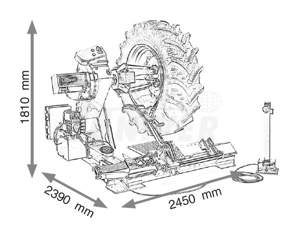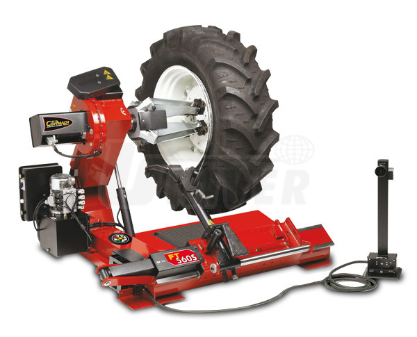 Elektro-hydraulický stroj (automat) pro montáž a demontáž pneumatik nákladních automobilů a strojů s průměry ráfků 14" až 56" (i supersinglů).- výkonný automat pro montáž a demontáž pneumatik nákladních automobilů a autobusů, traktorů, zemních strojů atd. s průměry ráfků 14" až 46", s prodlužovacími adaptéry až 56“ (volitelné příslušenství)