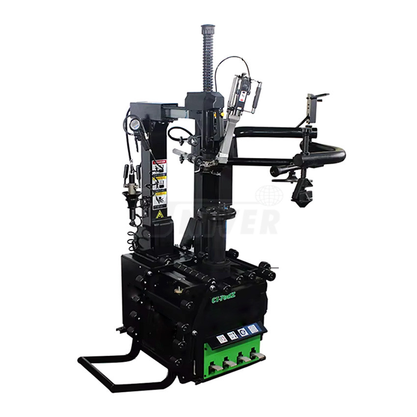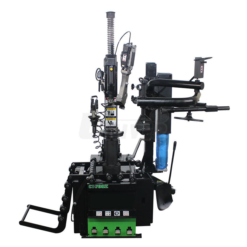 atraktívny dizajn v čierno-zelenej kombinácii, ktorý sa líši od väčšiny červených alebo modrých pneuservisných strojov v krajine