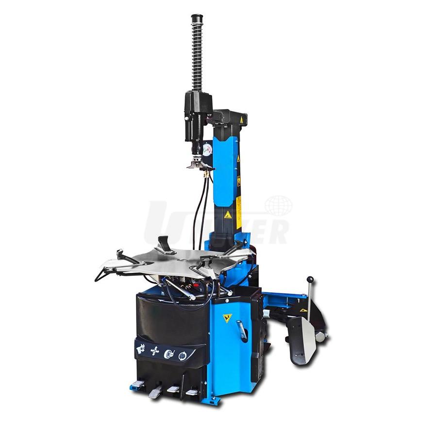 Elektropneumatický stroj (automat) pro montáž a demontáž pneumatik osobních a lehkých užitkových automobilů až do 28" se čtyřčelisťovým upínacím talířem.- velký čtyřčelisťový upínací talíř s pneumatickým upínáním kola