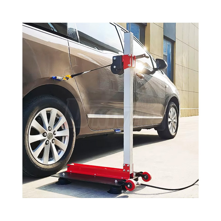 Praktická súprava na vyrovnávanie/vyťahovanie preliačenín na karosériách má základňu so 4 prísavkami a 2 kolieskami, stĺpik s nastaviteľnou výsuvnou kladkou, popruh a hák.- celá súprava sa pomocou 2 koliesok ľahko prepraví na miesto poškodenej karosérie, postaví sa, stlačený vzduch sa pripojí k spodnej základni pomocou rýchlospojky, ktorá aktivuje 4 prísavky na spodnej časti základne, tie zabezpečia dokonale pevné prichytenie k podlahe