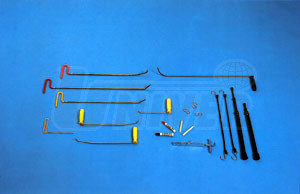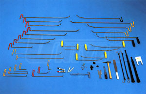 Soupravy špičkového nářadí pro odstraňování důlků a promáčklin karosérií jejich vytlačením technologií PDR obsahují zejména vytlačovací a rovnací páky, háky a další příslušenství.- opravy důlků a promáčklin na karosériích vozidel technologií PDR (Paintless Dent Repair) se provádějí pomocí speciálního nářadí a pomůcek za studena bez nutnosti provádět konvenční tmelení, broušení a lakování poškozeného místa, přičemž oprava vyžaduje méně času a je levnější, typickým příkladem takových poškození jsou třeba menší deformace po úderech krup, při parkování, při transportu vozidel apod.