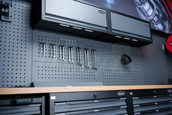 Světelná lišta (1000 lumen) pro instalaci na závěsné skříňky / dílenský nábytek VIGOR.- lepicí pásky k montáži na nemagnetické plochy