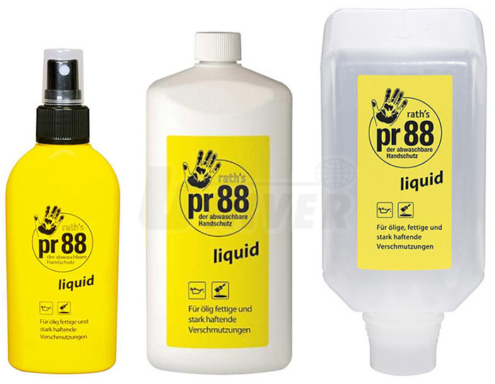 Před zahájením práce se na ruce dá cca 1 ml (množství velikosti poloviny lískového ořechu) tekutého krému a ten se pečlivě vetře do rukou (obzvláště v místech nehtů a nehtových lůžek) a nechá uschnout. Suchý, elastický, dotykově stabilní, spolehlivý ochranný film vytváří účinnou bariéru mezi pokožkou a na ni působící pracovní látkou a zabraňuje pronikání částic nečistoty do pokožky. Po skončení práce se ruce nahrubo otřou hadrem (pokud je to kvůli vrstvě nečistot vůbec zapotřebí), pozvolna umyjí vodou, dobře se opláchnou a osuší. Nečistoty se spláchnou z rukou spolu s tekutým krémem pr88 liquid. Použití dalších mycích/čisticích prostředků už zpravidla není zapotřebí. Skladovací podmínky: běžná pokojová teplota.
