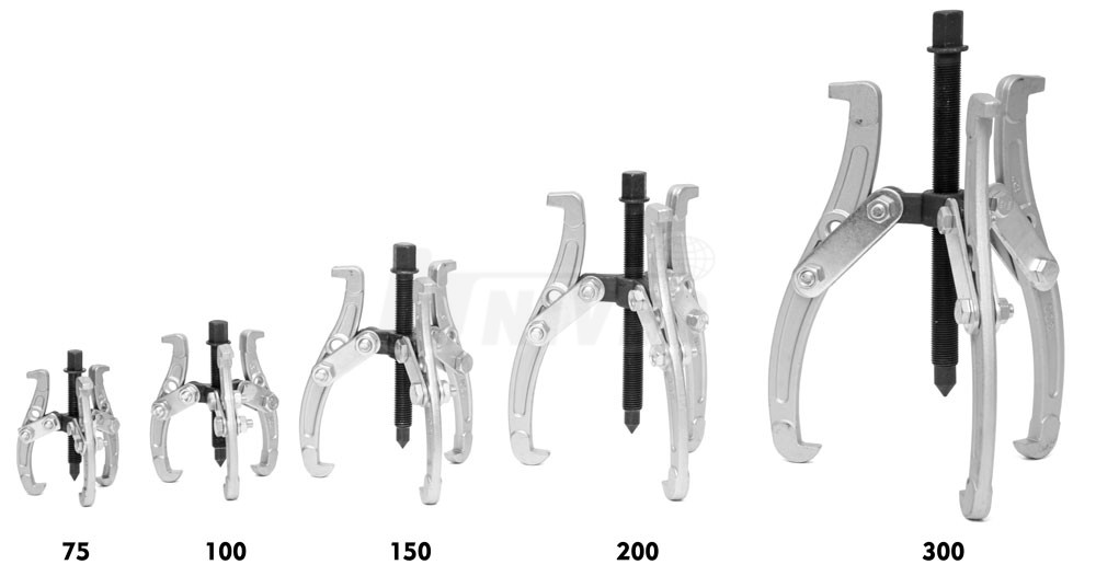 Univerzální tříramenné stahováky s oboustranně použitelnými rameny z vysokouhlíkové oceli ve velikostech 75 / 100 / 150 / 200 / 300 mm nalézají široké uplatnění při servisu a opravách automobilů, různých strojů, mechanizmů apod. Překlopitelná ramena mají na jednom konci užší a na druhém konci širší čelisti. Jsou opatřena dvěma otvory, takže je lze podle potřeby přestavět.Objednávka tovaru