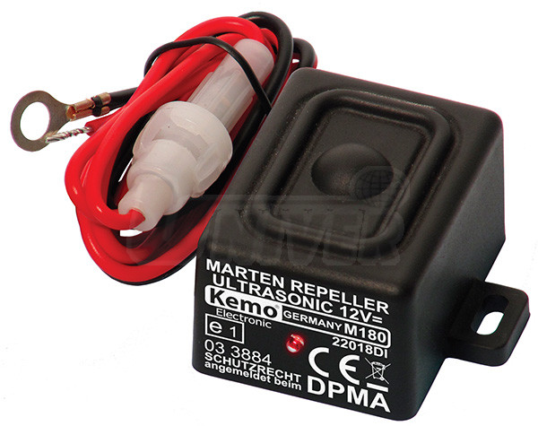 Špičkový voděodolný ultrazvukový odpuzovač / plašič kun a hlodavců pro automobily, zemědělské stroje, karavany, lodě apod.Vysoce výkonný a extrémně odolný přístroj. Generuje agresivní ultrazvuk se sinusovým průběhem, který není pro člověka slyšitelný, ale který kuny vnímají jako nanejvýš nepříjemný a všemožně se mu vyhýbají. Díky odolnosti vůči nečistotám a vodě (snáší imytí motoru) jej lze namontovat přímo do míst, kudy může škůdce do vozidla vniknout. Chrání tak kabely a plastové součásti umístěné v motorovém prostoru automobilu před zničením škůdcem. Napájení přístroje se řeší připojením k autobaterii.