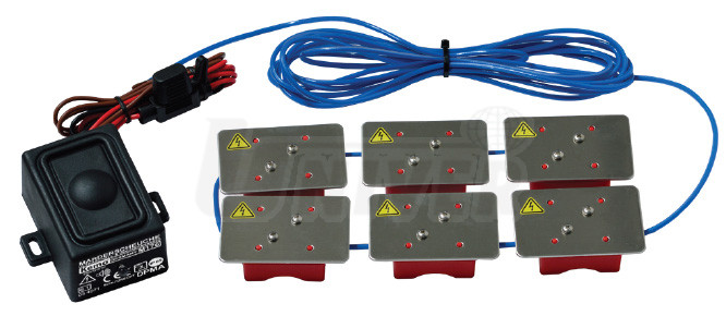 Velice účinný voděodolný odpuzovač kun kombinací pulzujícího světla, agresivního silného ultrazvuku a elektrického šoku prostřednictvím vysokonapěťových destiček nabitých na cca 200 - 300 V/DC v motorovém prostoru automobilů. Jedná se o slabý šok, který kuny odežene, ale neusmrtí. Modul má obzvláště malou spotřebu proudu (< 0,005 A), vypíná se automaticky při napětí baterie < 11,5 V/DC (z důvodů, aby se při delší odstávce automobilu nevybila baterie). Základní přístroj s ultrazvukovým vyzařováním je vodotěsný podle IP 65 a může být nainstalován do těch míst a otvorů automobilu, kde se předpokládá vstup kun. Přístroj má zabudované jasně blikající LED diody.Vlastnosti: