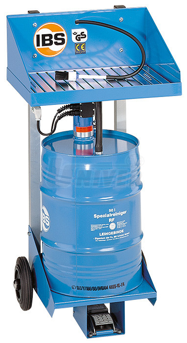Sešlápnutím nožního spínače se uvede čerpadlo do provozu a mezitím co se umývají znečištěné díly, stéká použitá kapalina zpátky do sudu, kde se nečistoty samostatně oddělují a usazují na dně sudu. Současně nasává hrdlo čerpadla, které sahá pouze do poloviny sudu, čistou čistící kapalinu. Dlouhá použitelnost IBS-speciálních kapalin je tímto způsobem zaručena.