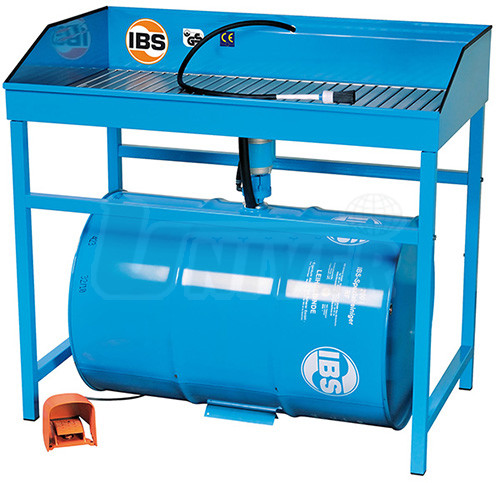 Sešlápnutím nožního spínače se uvede čerpadlo do provozu a mezitím co se umývají znečištěné díly, stéká použitá kapalina zpátky do sudu, kde se nečistoty samostatně oddělují a usazují na dně sudu. Současně nasává hrdlo čerpadla, které sahá pouze do poloviny sudu, čistou čistící kapalinu. Dlouhá použitelnost IBS-speciálních kapalin je tímto způsobem zaručena.
