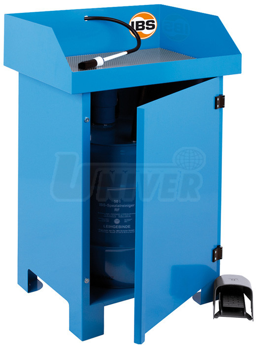 Sešlápnutím nožního spínače se uvede čerpadlo do provozu a mezitím co se umývají znečištěné díly, stéká použitá kapalina zpátky do sudu, kde se nečistoty samostatně oddělují a usazují na dně sudu. Současně nasává hrdlo čerpadla, které sahá pouze do poloviny sudu, čistou čistící kapalinu. Dlouhá použitelnost IBS-speciálních kapalin je tímto způsobem zaručena.