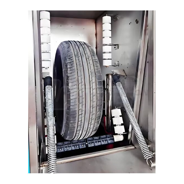 Umývačka kolies osobných a ľahkých úžitkových automobilov s ohrevom vody, automatickým riadením PCL a nastaviteľnou dobou čistenia.- umožňuje vyvažovanie kolies zbavených nečistoty, čo je jedným z predpokladov vysokej úrovne poskytovaných služieb