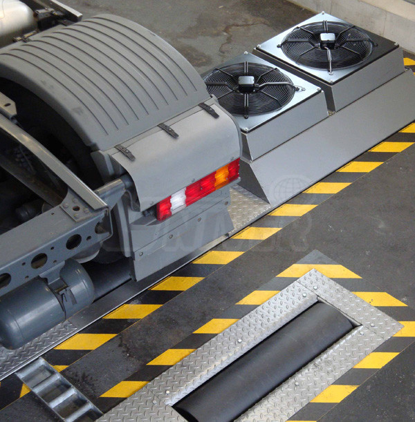 Válcová zkušebna výkonu a funkce pro osobní i nákladní automobily. Maximální dovolené přejezdné zatížení je 16 000 kg, maximální zkušební šířka 2850 mm, délka válců 990 mm.Ovládací a ukazatelová skříň