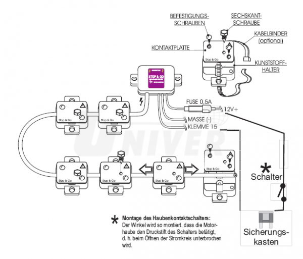 Vysokonapěťový přístroj s napájením 12V poskytuje kombinovanou ochranu proti kunám, které často působí značné škody na vozidlech.Přístroj pracuje na principu "elektrického ohradníku". Celkem 6 vysokonapěťových kontaktních destiček se nabíjí pomocí kondenzátoru s napětím 200-300 V. Při dotyku kuny s destičkou dojde k elektrickému šoku zvířete, který je velmi nepříjemný, ale nezabíjí ani kunu nezraní. Než se kondenzátor znovu nabije, má kuna dost času se vzdálit. Permanentní údery proudem, které by pro ni byly životně nebezpečné, jsou ochrannou elektronikou vyloučené.