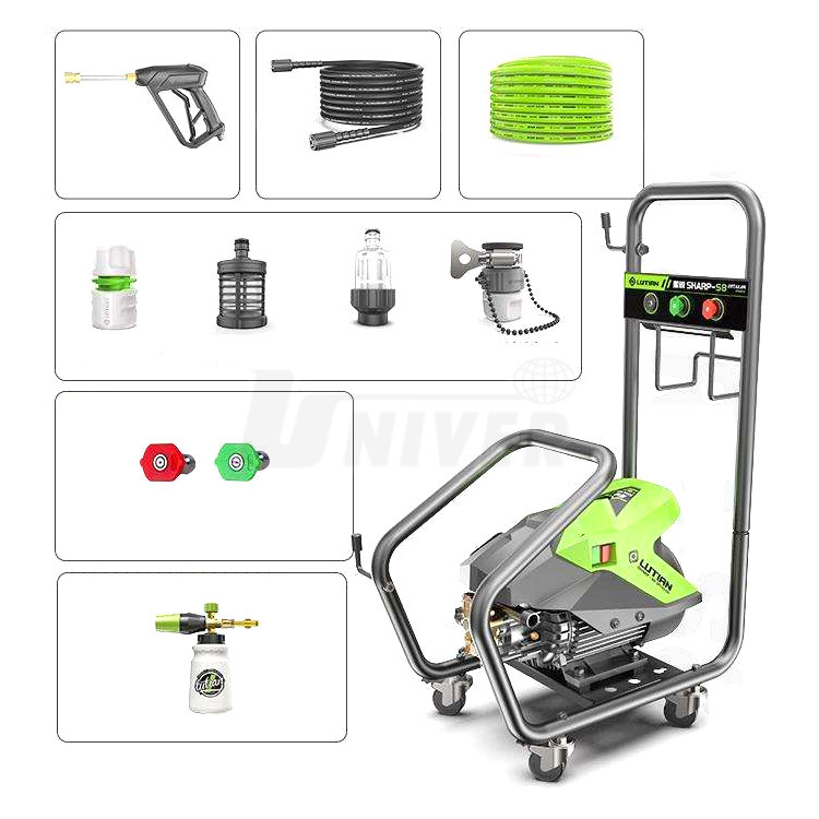 - štandardné príslušenstvo: striekacia pištoľ, filter, nádobka na šampón, rýchlospojka, matica vstupného filtra, hadica na navíjacom bubne 10 m, prívodná hadica 5 m