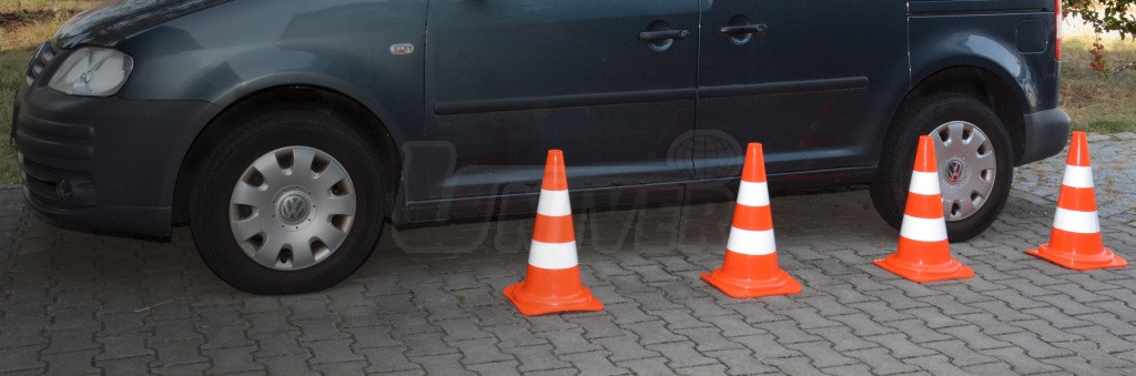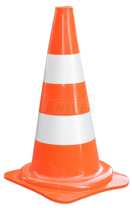 - oranžová barva a 2 výrazné bílé reflexní pásky (každý o šířce 80 mm) umožňují vidět kužel z velké vzdálenosti, a to i za snížené viditelnosti