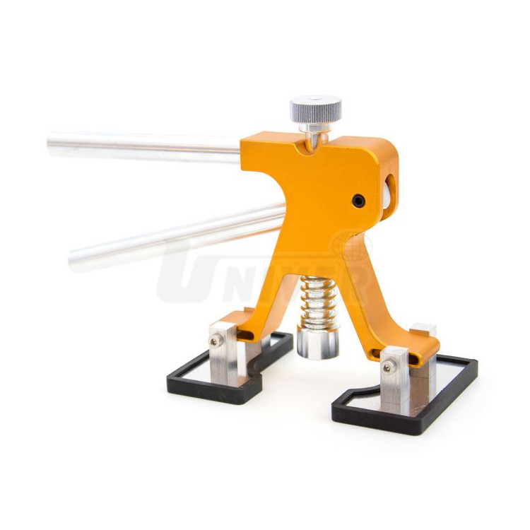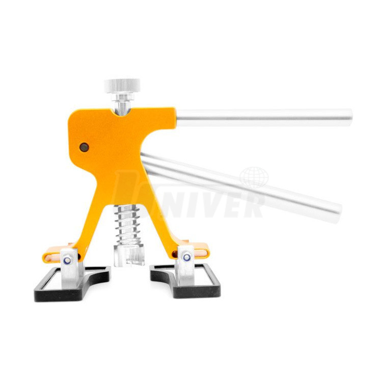 Vytahovací kleště se 2 opěrkami a vytahovacím mechanismem na plastové vytahovací adaptéry pro odstraňování promáčklin karosérií.- opravy důlků a promáčklin na karosériích vozidel technologií PDR (Paintless Dent Repair) se provádějí pomocí speciálního nářadí a pomůcek za studena bez nutnosti provádět konvenční tmelení, broušení a lakování poškozeného místa, přičemž oprava vyžaduje méně času a je levnější