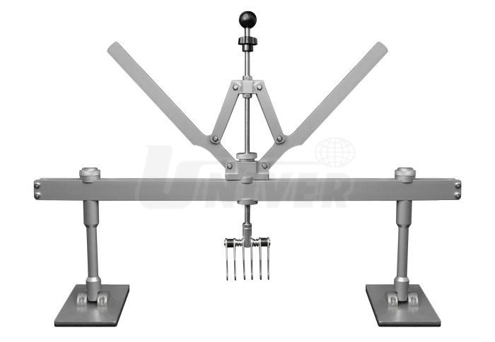 - speciální vytahovací můstek z aluminiové slitiny se 2 podélně posuvnými rameny s kloubově uloženými opěrkami a středovým šroubem s nastavitelným vytahovacím přípravkem se 6 otočnými drapáky