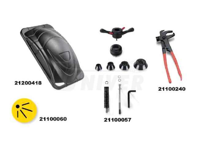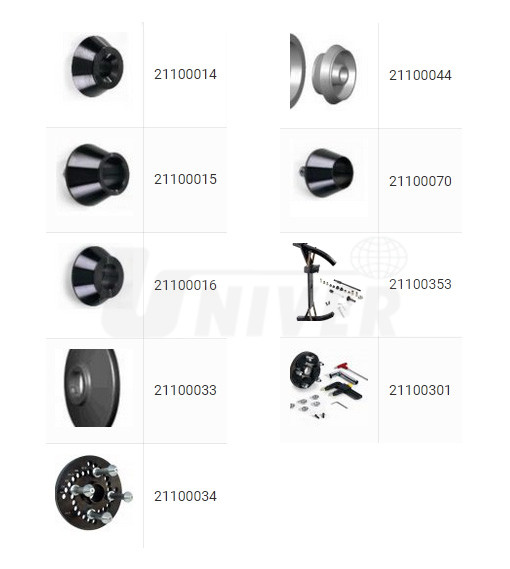21100057 – sada (4 ks) středicích / centrovacích kuželů Ø 40 – 132 mm s příslušenstvím, univerzální středová příruba