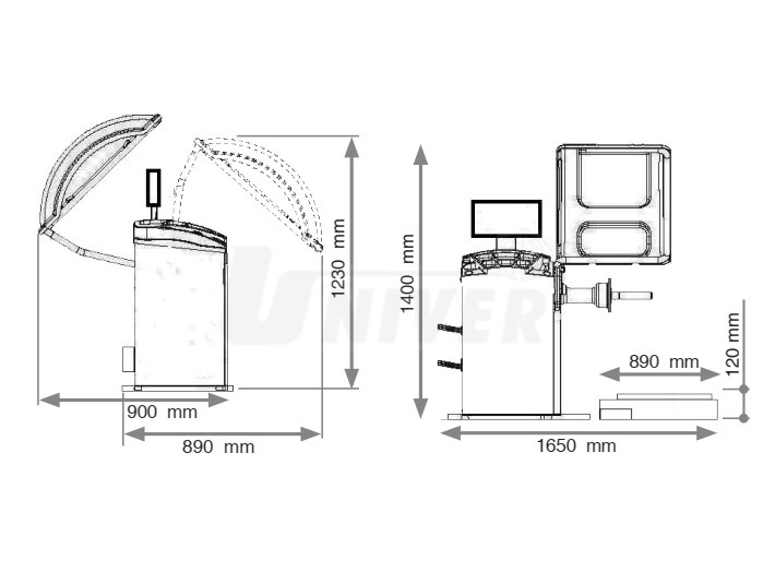 - přídavný zvedák kol do hmotnosti 75 kg, kontrola zvedání a spouštění se realizuje elektronicky pomocí software vyvažovačky kol