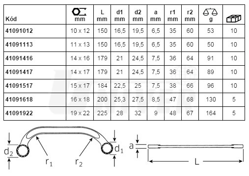STAHLWILLE STARTER 27 19 X 22 Zahnutý oboustranný očkový klíč