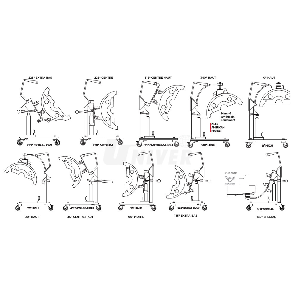 - 4 úchyty: 12 h, 10 h/2 h, 9 h/3 h a specifická poloha s odsazenou tyčí pro Mercedes-Benz