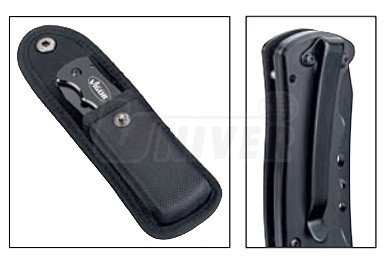 Profesionální zavírací nůž s aretací pro venkovní použití se dodává s nylonovým pouzdrem a sponkou na pásek.