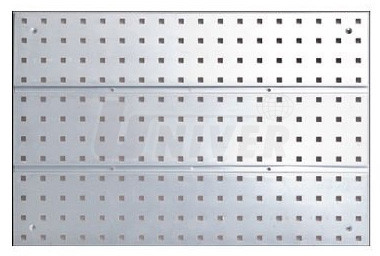 Kovová děrovaná deska pro zavěšení nářadí, nástrojů, organizérů, boxů pomocí různých držáků, háčků atd.- používá se buď v horizontální nebo ve vertikální poloze především k instalaci na stěnu