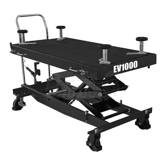 Pojízdný zvedací stůl s nosností 1000 kg se zdvihem od 550 mm do 1750 mm s ovládáním pomocí hydraulické nožní pumpy je vhodný pro demontáž / montáž bloků baterií elektromobilů, případně i dalších agregátů.- zvedací stůl řady Q-LINE lze používat nejenom při demontáži / montáži baterií elektromobilů, ale i např. motorů, převodovek apod.