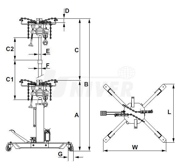 OMEGALIFT Pojízdný stojannový zvedák agregátů 1t