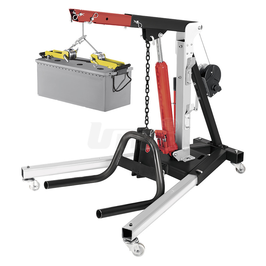 Pojízdný jeřábový zvedák s nosností 200 kg pro zvedání různých součástí nákladních automobilů, autobusů, zemědělských a stavebních strojů s nosností 200 kg.