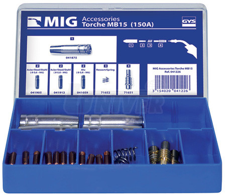 041226 - příslušenství/sada MB15 pro MIG-svařování 150 A v plastovém boxu obsahuje: