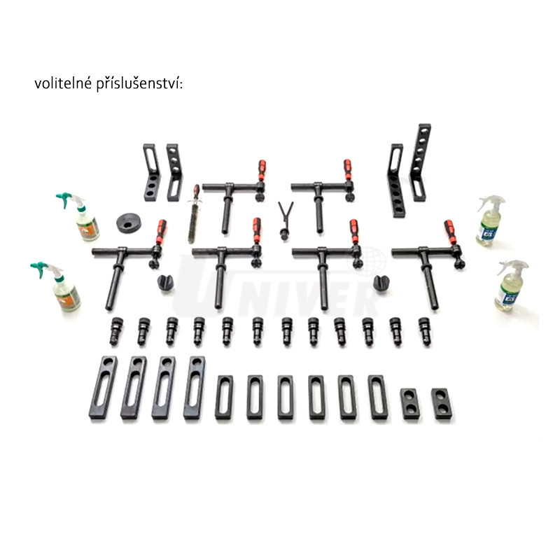 Presný zvárací stôl s nitridovanou doskou s rozmermi 1500 × 1000 × 200 mm so súpravou polohovacích / upínacích prípravkov.- Vykonávanie zváracích prác vo výrobe a dielňach, ale aj pri údržbe a opravách vozidiel