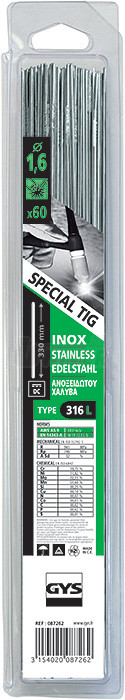 GYS Svářecí tyčinky TIG/WIG nerezová ocel / INOX (316LSi) - 1,6 mm (60 ks)