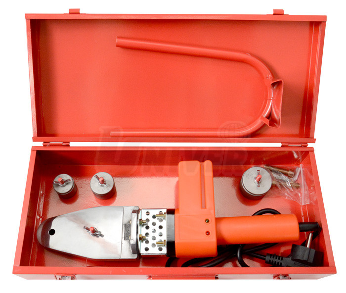 Svářečka plastových trubek 600 W s automatickým termoregulátorem, 3 nástavce Ø 20 / 25 / 32 mm, stojan a příslušenství.- pro polyfúzní svařování všech termoplastických materiálů, zejména spojování plastových trubek (nejčastěji z PP, PE, PB, PPC, PPR nebo PVDF) pomocí tvarovek v rámci instalačních prací, především vnitřních rozvodů vody a topení