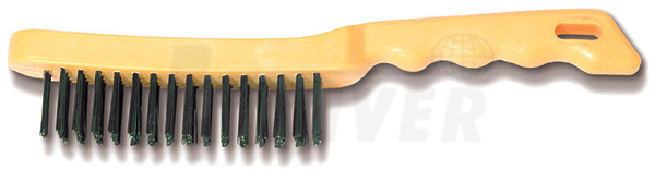 Ocelový kartáč s ergonomicky tvarovanou plastovou rukojetí dodávaný francouzskou firmou GYS.